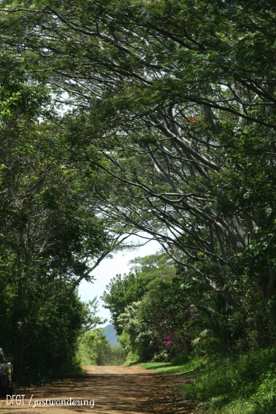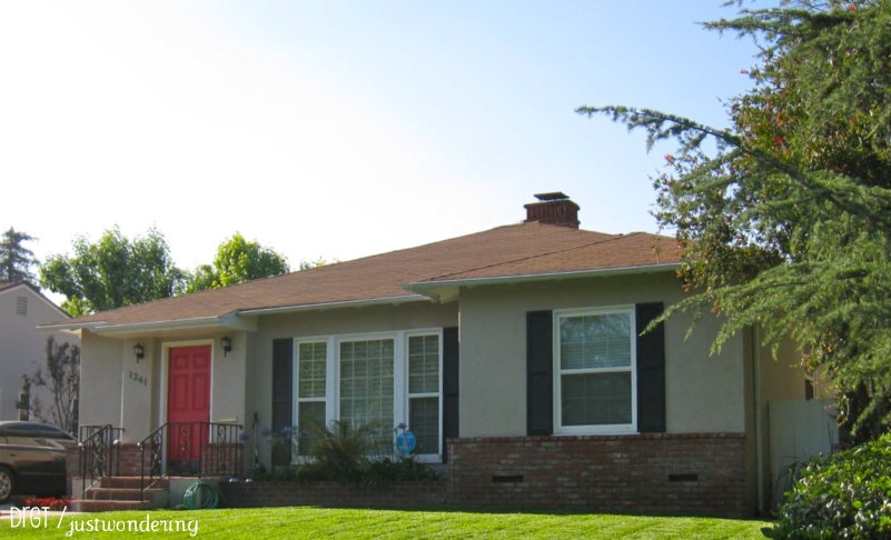 44. Finding scarlet amidst the growing green in our veggie garden.