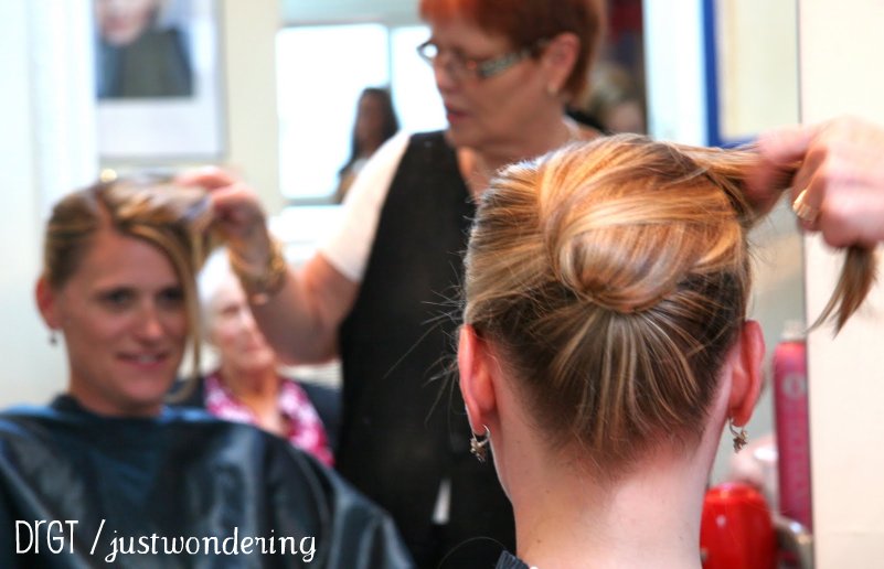 Our middle daughter getting a sleek up-do to show off that lovely long neck…
